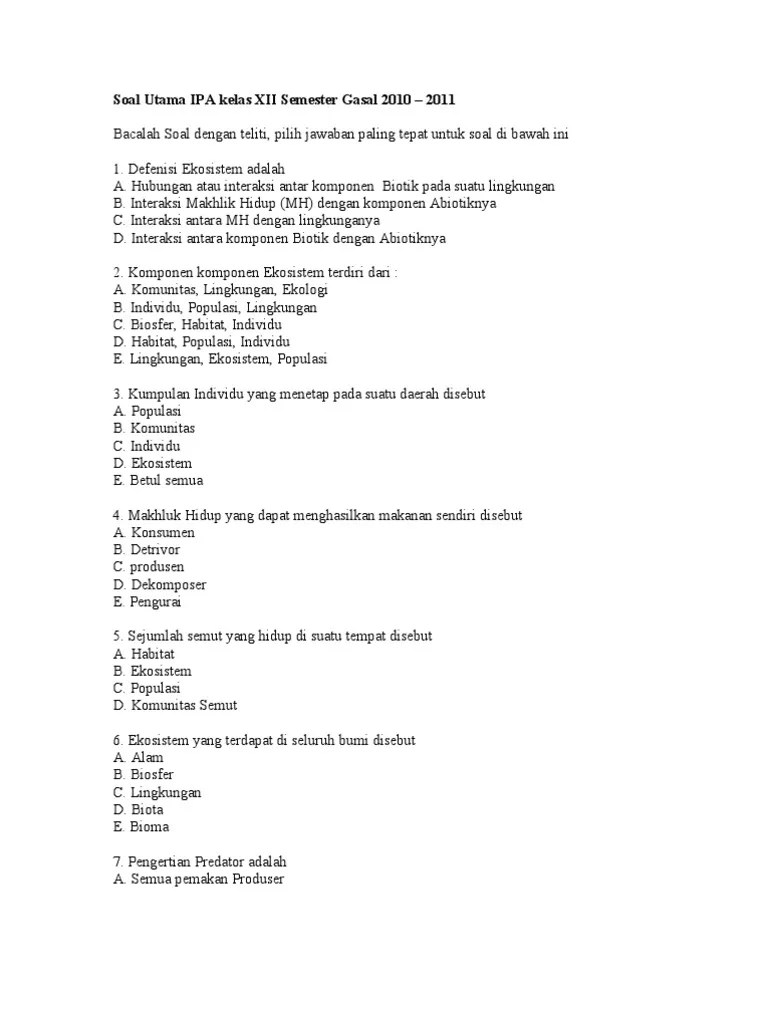 Tindakan manusia yang dapat merusak lingkungan di antaranya. Download soal latihan ulangan harian ipa kelas 7 tentang ekosistem semester 2. Download soal uh plh smp kelas 7 semester 1 bab lingkungan hidup ktsp terbaru, soal isian dan uraian/ essay. Tanah, udara, suhu, dan kelembapan termasuk komponen… a. Jaringan yang menyusun organ mata pada hewan adalah ….